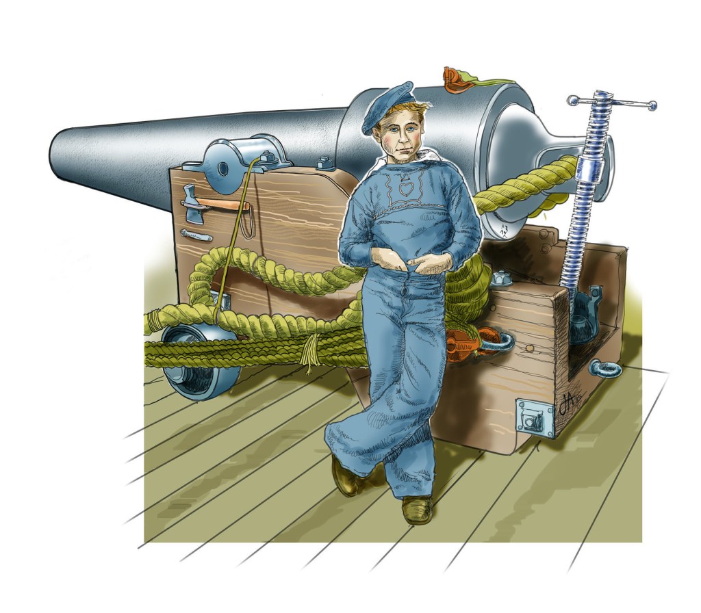 Not much study is focused on children at sea. Perhaps the most practical perspective is the unfamiliar concept of children as a burden unless they could contribute to the family’s survival, working the fields, bringing in wages, apprenticing to trades. Sending a child to sea was in some ways a gift: a little nipper would be learning a trade, bringing back wages, would be fed and clothed and cared for as a part of the crew with some present value and as a prospective sailorman.